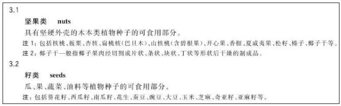 根据国家标准《坚果与籽类食品质量通则》(GB/T 22165-2022)定义,“具有坚硬外壳的木本类植物种子的可食用部分”属于坚果,包括核桃,板栗,杏核,扁桃核(巴旦木),山核桃(含碧根果),开心果,香榧,夏威夷果,松籽,榛子,椰子干等;“瓜,果,蔬菜,油料等植物种子的可食用部分”则属于籽类,包括葵花籽,西瓜籽,南瓜籽,花生,蚕豆,豌豆,大豆,玉米,芝麻,奇亚籽,亚麻籽等。