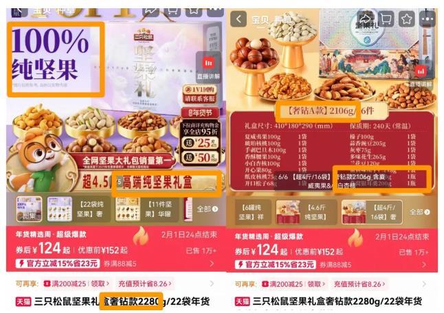 蓝框内的三款礼盒均不是纯坚果礼盒。 截图自电商平台。