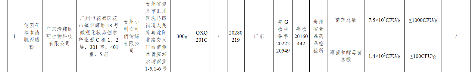 例如,俏因子草本清肌泥膜粉的菌落总数检验结果为7.5×10³CFU/g;俏因子草本美肌焕颜泥膜粉的菌落总数检验结果为2.1×10³CFU/g;Felshell白术三七面膜粉的菌落总数检验结果为2.8×10⁵CFU/g;俏柔生姜清爽健发洗发乳的菌落总数检验结果为1500000CFU/ml;COOX念香晚樱氨基酸护发素的菌落总数检验结果为1.8×10⁵CFU/g;Niepoth沐浴露(福建白茶)的菌落总数检验结果为7.2×10⁵CFU/g;丝维雅草本润肤露的菌落总数检验结果为46000CFU/g。