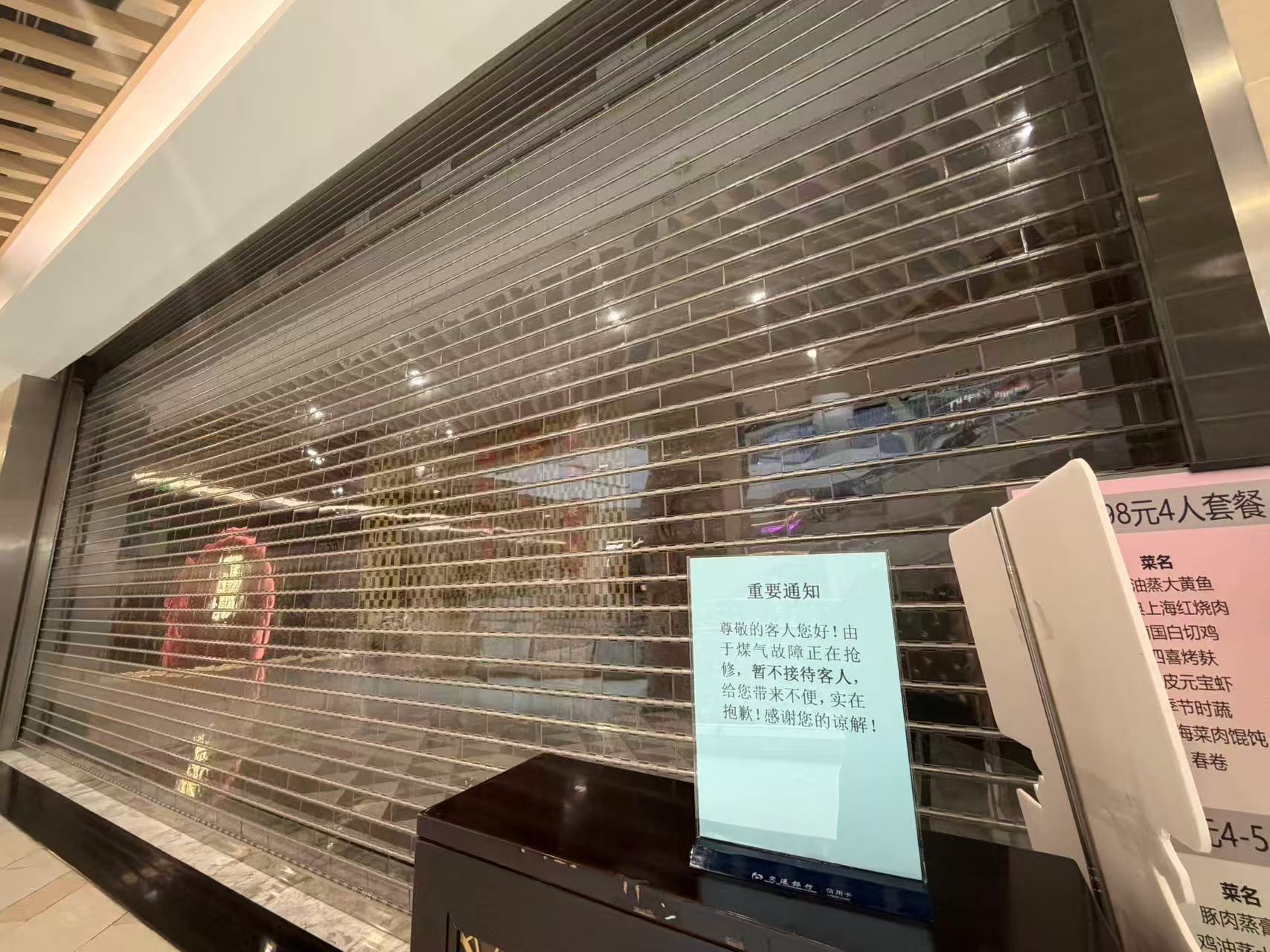 与此同时,贝壳财经记者向所在商场物业以及上海燃气公司核实,该店并未出现燃气故障,与告知书所述情况存在出入。而门店一侧还摆放着年夜饭套餐的宣传单。