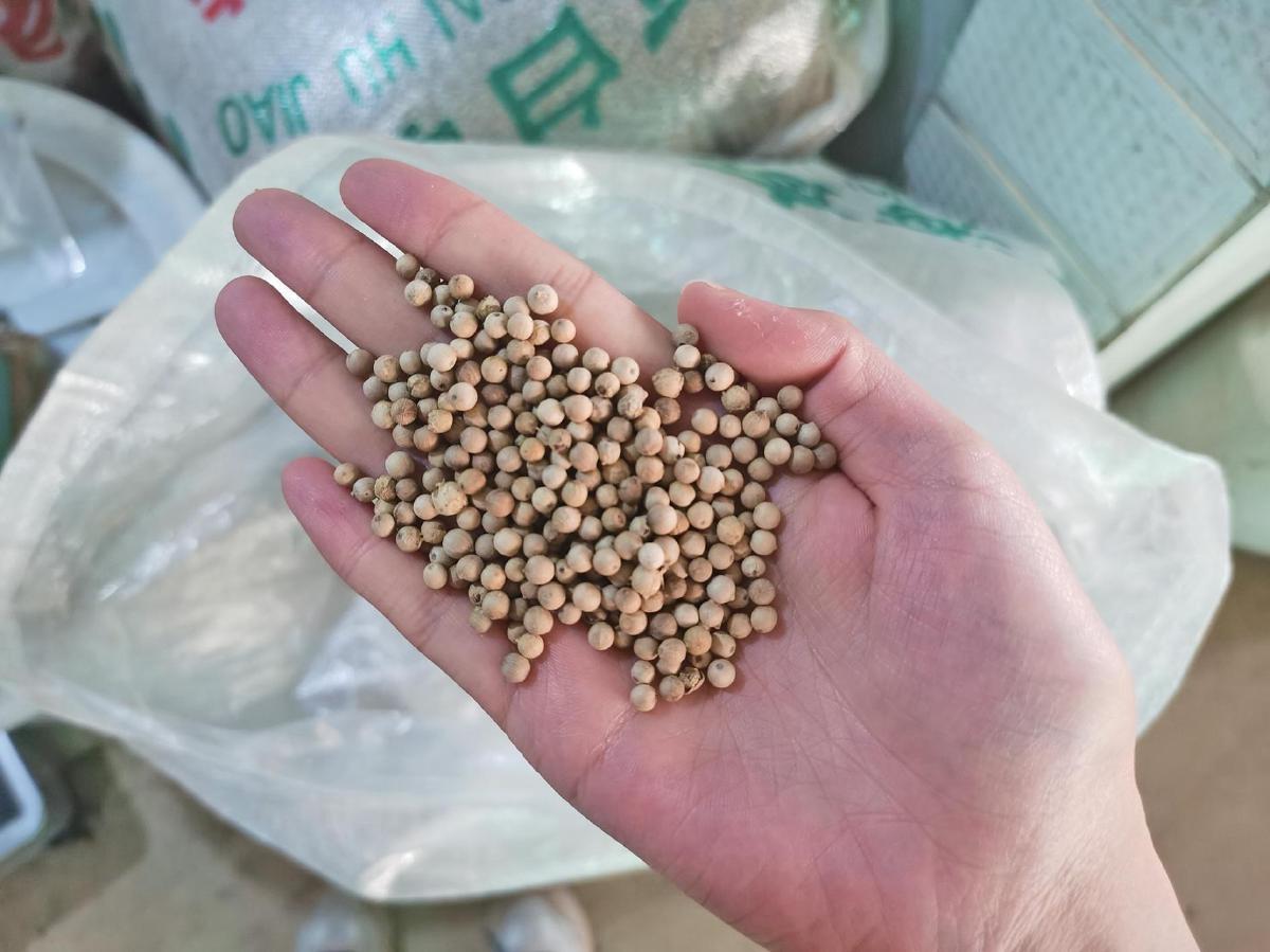 海南省海口市琼山区大坡镇某胡椒加工厂的正宗白胡椒粒。社交平台截图、新京报记者 刘欢 摄