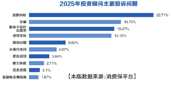 【投资顾问】退款纠纷、诈骗位列投诉前二