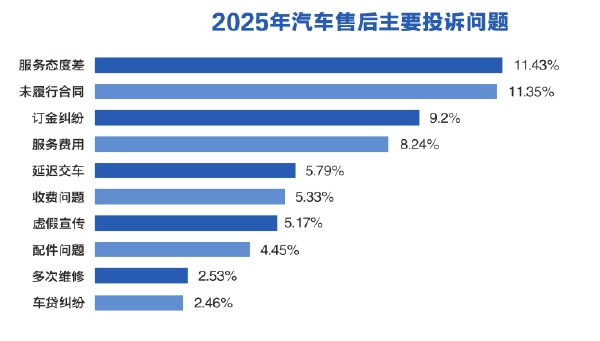 【汽车售后】服务态度差与未履行合同并列投诉首位