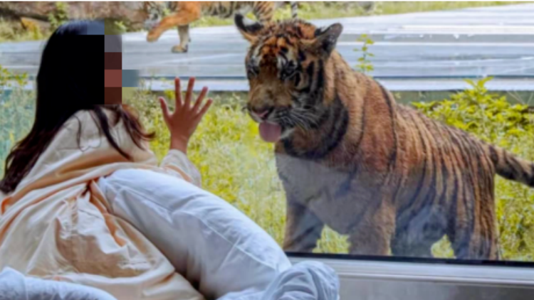 河南这家动物园的“虎景房”其实已经运营了四年,最近因为短视频突然爆火。房间窗外就是老虎的活动区,隔着双层防弹防爆玻璃,游客能近距离看到东北虎、白虎在眼前走动。针对大家最担心的安全问题,园方回应:玻璃“子弹都打不透”,外面还通了电,老虎一靠近就会被电到,所以不会贴墙。虽然晚上能听到虎啸,但大多数时候老虎都在休息,不会整晚叫。